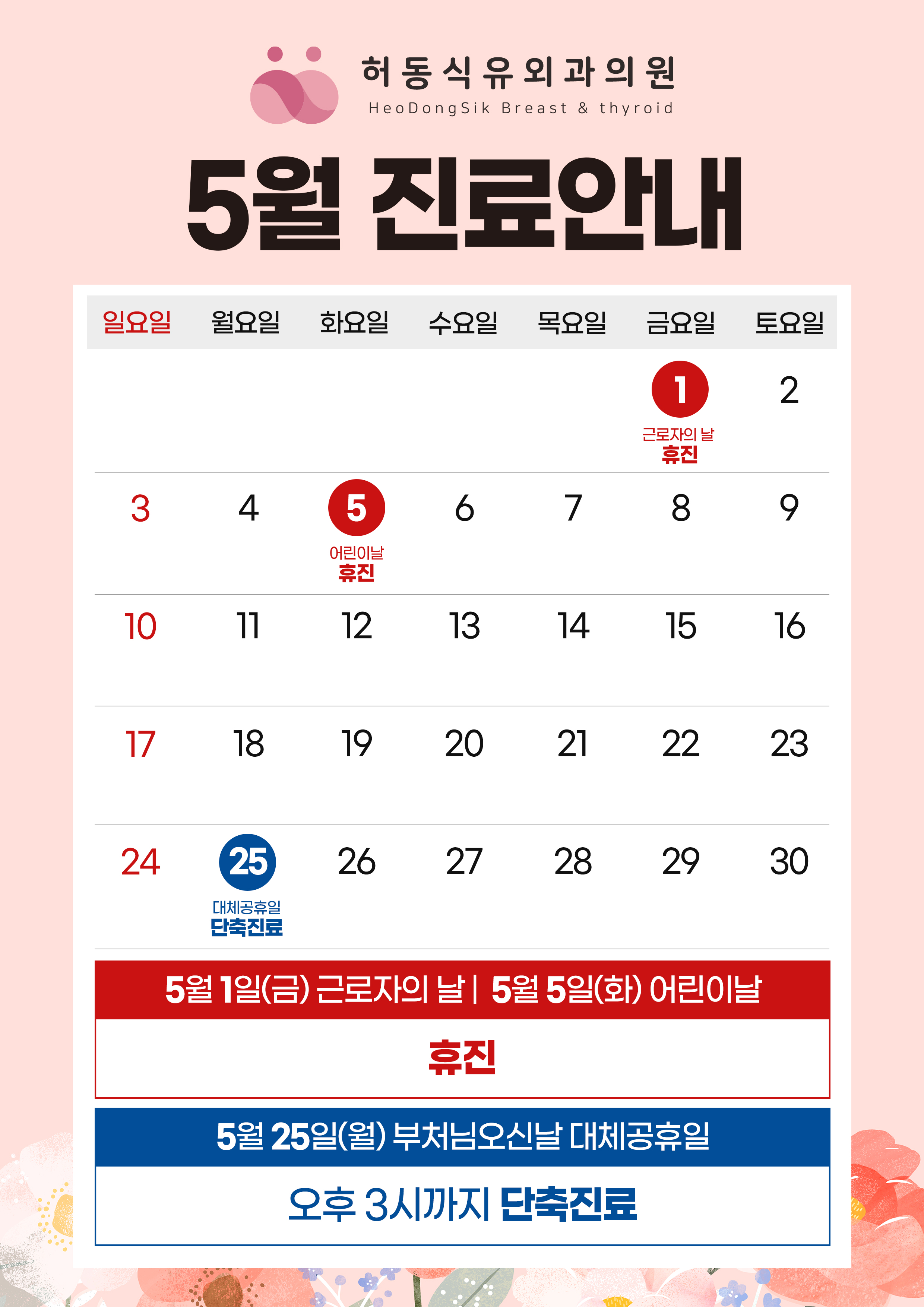 · 일·공휴일 휴진, 토요일 점심시간 없이 진료